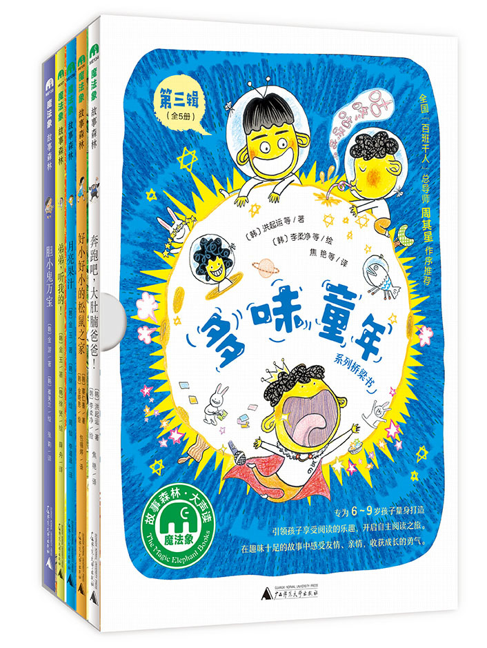 “魔法象”是廣西師范大學(xué)出版社于2015 年初推出的童書(shū)品牌。我們期待構建一個(gè)連接書(shū)、兒童與成人的魔法王國。在這里,你會(huì )與最好的童書(shū)相遇,度過(guò)詩(shī)意盎然的歡欣歲月。為了孩子,讓我們一起大聲朗讀,讓愛(ài)成為魔法!